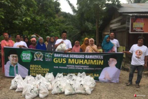 MEDAN - Wakil Ketua Komisi VIII DPR RI dari Fraksi PKB, Drs.H.Marwan Dasopang, M.Si memberikan bantuan sembako Ramadhan, dari Ketua Umum Partai Kebangkitan Bangsa (PKB) H.Abdul Muhaimin Iskandar, di desa Pamuttaran Kecamatan Padang bolak julu Kabupaten Kabupaten Padang Lawas Utara , Senin 25 April 2022 - Kamis 28 April 2022