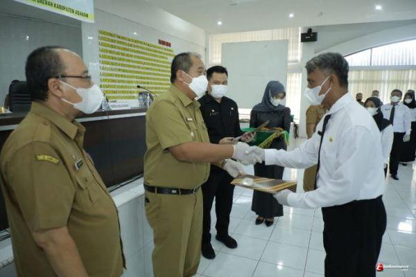 ASAHAN - Bupati Asahan H. Surya, BSc melantik 13 orang Pejabat Adminstrator dan 3 orang Pejabat Pengawas di Lingkungan Pemerintah Kabupaten Asahan di Aula Melati Kantor Bupati Asahan, Senin (09/05/2022).