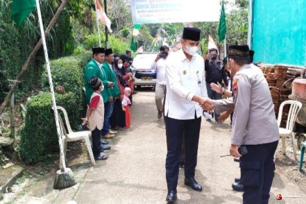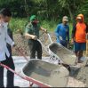 Selesai penyerahan naskah berita acara, Letkol Inf Jenry Polii bersama Bupati dan jajaran Forkompimda turut meninjau langsung pelaksanaan pengecoran jalan di dusun Bojengan Desa Sambungsari.