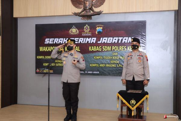 Adapun yang melaksanakan Sertijab yakni, Kompol Donny Eko Listianto menjabat sebagai Bagwassidik Ditresnarkoba Polda Jateng yang sebelumnya Wakapolres Kendal sedangkan Wakapolres Kendal akan diisi oleh Kompol Edy Sutrisno yang sebelumnya menjabat sebagai Pamen Polda DIY, Kompol Tegoeh Boedi Prasetijo jabatan lama Kabag SDM Polres Kendal mendapatkan promosi Jabatan baru sebagai Wakapolres Rembang dan digantikan Kompol Andy Warsono yang sebelumnya Kabag SDM Polres Magelang.