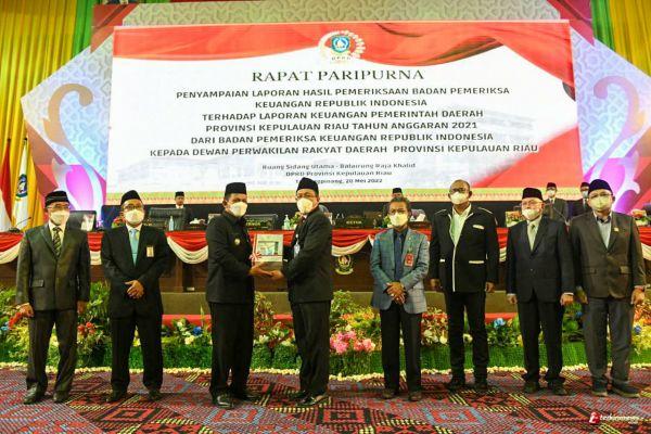 TANJUNGPINANG - Berdasarkan pemeriksaan yang telah dilakukan Badan Pemeriksa Keuangan (BPK) RI atas Laporan Keuangan Pemprov Kepri Tahun 2021, termasuk Implementasi atas rencana aksi yang akan dilaksanakan oleh Pemprov Kepri untuk menindaklanjuti rekomendasi, BPK RI memberikan Opini Wajar Tanpa Pengecualian (WTP). Ini merupakan Opini WTP yang diraih Pemprov Kepri dalam 12 tahun berturut-turut.