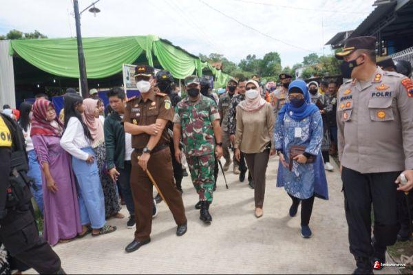 Dandim 0736/Batang Letkol Arh Yan Eka Putra bersama Kapolres Batang M.Irwan Susanto Dampingi PJ Bupati Batang Lani Dwi Rejeki meninjau secara langsung pelaksanaan Pemilihan Kepala Desa Serentak Tahun 2022 Kab Batang, Minggu (29/5/2022).