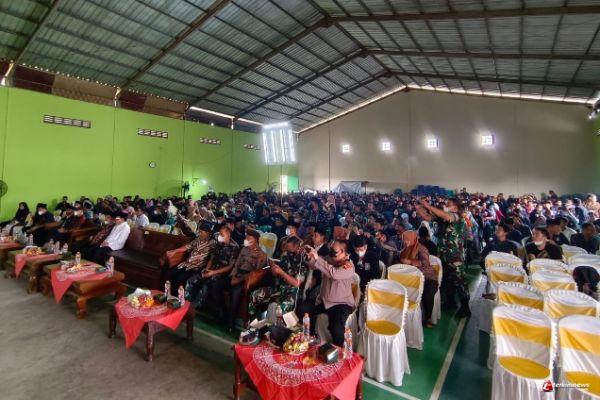Kapolsek Gemuh IPTU Muhammad Yusuf bersama anggota melaksanakan pengamanan halal bihalal dan pelantikan Pengurus Setia Hati Terate Kabupaten Kendal ( PSHT P16 ) periode 2022-2027 di Gedung Serbaguna Desa Jenarsari Kecamatan Gemuh Kendal, Minggu (29/5/2022).