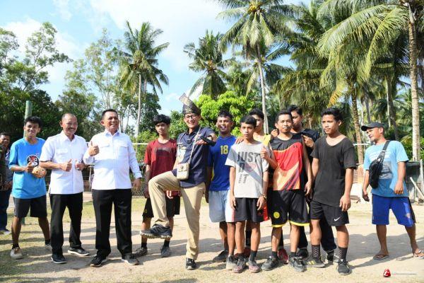 Usai bercengkarama hangat, mereka selanjutnya langsung menuju lokasi desa wisata di Nongsa. Sebelum masuk ke lokasi desa wisata, Menteri Sandiaga juga menyempatkan main sepak takraw bersama Gubernur Ansar.