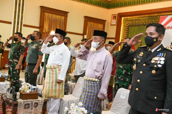 TANJUNGPINANG - Gubernur Kepulauan Riau H. Ansar Ahmad beserta jajaran Forkompimda Kepri mengikuti Upacara Peringatan Hari Pancasila tingkat nasional secara virtual di Gedung Daerah, Tanjungpinang, Rabu (1/6) pagi. Secara terpusat, Presiden RI Joko Widodo (Jokowi) menjadi Inspektur Upacara dalam Peringatan Hari Lahir Pancasila Tahun 2022 di Lapangan Pancasila Ende, Kabupaten Ende, Provinsi Nusa Tenggara Timur.