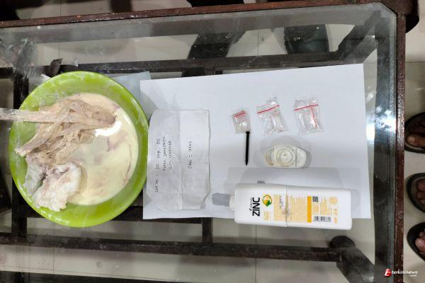 Saat petugas melakukan penggeledahan di dalam Sampo Cair, didalamnya ditemukan 3 (tiga) bungkus serbuk kristal warna bening dan di sabun cair terdapat 2 (dua) bungkus serbuk kristal warna bening.