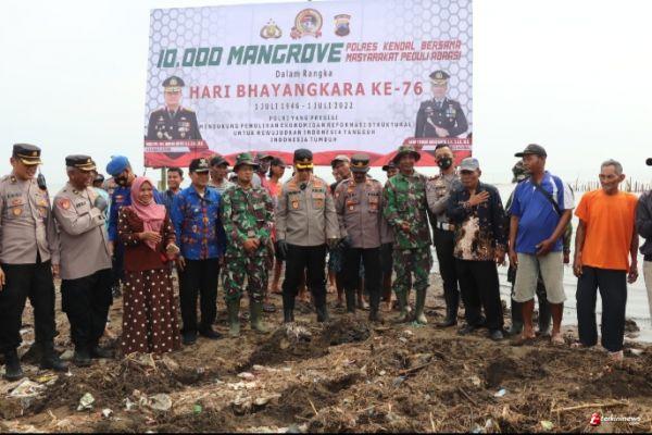 HUT Bhayangkara Ke 76 Sebagai Wujud Peduli Penghijauan Pantai, Polres Kendal Tanam 10.000 Pohon Mangrove
