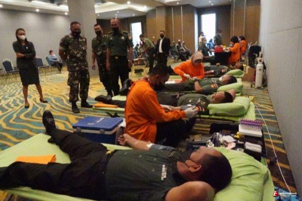 Bertempat di Hotel Luminor Purwokerto, puluhan prajurit Wijayakusuma Korem 071/Wijayakusuma Sokaraja Banyumas, ikuti donor darah peduli terhadap sesama, Kamis (16/6/2022).