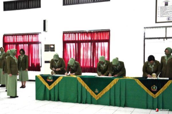 Serah terima jabatan ketiga Ketua Persit Kartika Chandra Kirana Cabang dan Ketua Yayasan Kartika Jaya Koordinator XXIV Dim 0736 Rem 071 Cabang III Diponegoro disaksikan Ketua Persit Kartika Chandra Kirana Koorcab Rem 071 PD IV/Diponegoro Ny. Natania Yudha Airlangga.