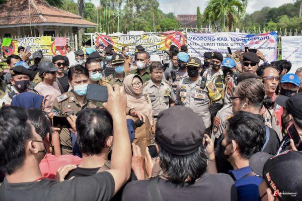 Bupati Tegal Temui Ratusan Pendemo,Tidak Semua Proyek Dikonsolidasi