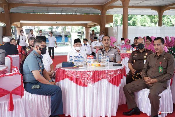 ASAHAN - Dalam rangka peringatan Hari Bhayangkara ke-76, Bupati Asahan bersama dengan Forkopimda Kabupaten Asahan, Tokoh Agama dan OKP menghadiri doa bersama yang diselenggarakan oleh Polres Asahan di Lapangan Adhi Pradana Polres Asahan, Rabu (29/06/2022).