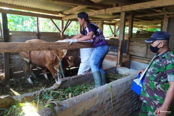 Jelang Idul Adha, Babinsa Desa Sodong Gercar Dampingi Petugas Vaksinasi Hewan Ternak