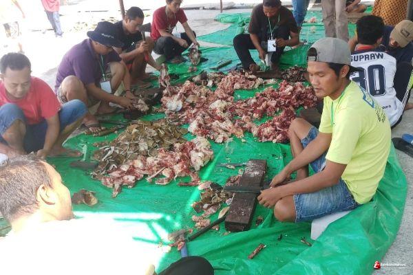 Setelah disembelih dan dipotong potong daging terbagi menjadi 629 bungkus dan didistribusikan ke warga Graha Raya 2.
