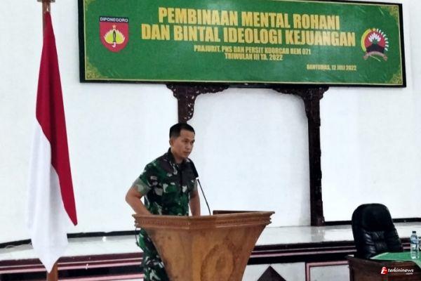 Tingkatkan keimanan dan ketaqwaan serta nilai kejuangan, Korem 071/Wijayakusuma berikan pengetahuan dan pemahaman Pembinaan Idiologi dan Kejuangan serta Pembinaan Rohani kepada segenap prajurit, PNS dan anggota Persit Kartika Chandra Kirana Koorcab Rem 071 PD IV/Diponegoro, Selasa (12/7/2022) di Gedung Pertemuan A. Yani Makorem 071/Wijayakusuma, Sokaraja, Banyumas.