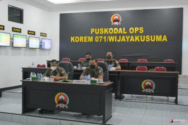Untuk mengantisipasi melonjaknya kasus Penyakit Mulut dan Kuku (PMK) di wilayah Jawa Tengah, Danrem 071/Wijayakusuma Kolonel Inf Yudha Airlangga, S.E., ikuti Video Conference yang diselenggarakan oleh Pemerintah Provinsi Jawa Tengah dan Kodam IV/Diponegoro, Rabu (13/7/2022) di Ruang Puskodal Ops Makorem 071/Wijayakusuma, Sokaraja, Banyumas.