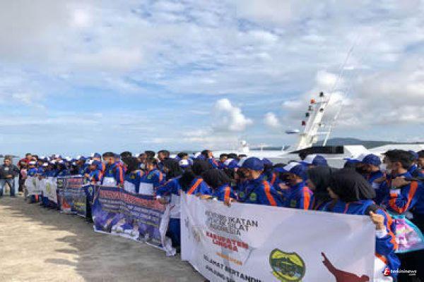 Para atlet dilepas secara resmi oleh Sekretaris Daerah (Sekda) Lingga, Syamsudi di Pelabuhan Jagoh, Dabosingkep, Minggu (24/7/2022) pagi, sebelum berangkat.