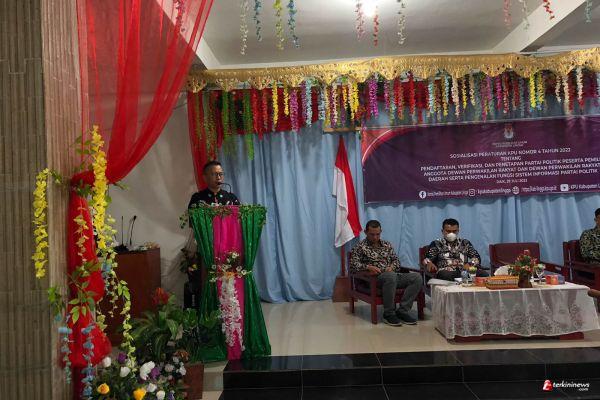 Sosialisasi peraturan KPU nomor 4 tahun 2022 tentang pendaftaran, verifikasi, dan penetapan partai politik peserta pemilu anggota Dewan Perwakilan Rakyat dan Dewan Perwakilan Rakyat Daerah serta pengenalan fungsi sistem informasi partai politik turut di hadiri juga Bawaslu, Dinas capil, Kominfo, Kapolres, Pengurus partai politik dan rekan – rekan dari Media.