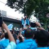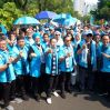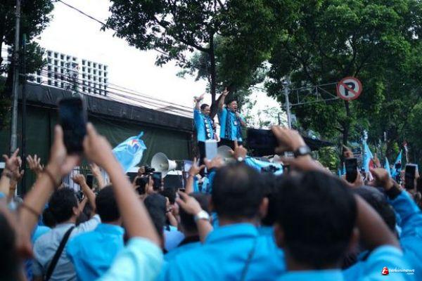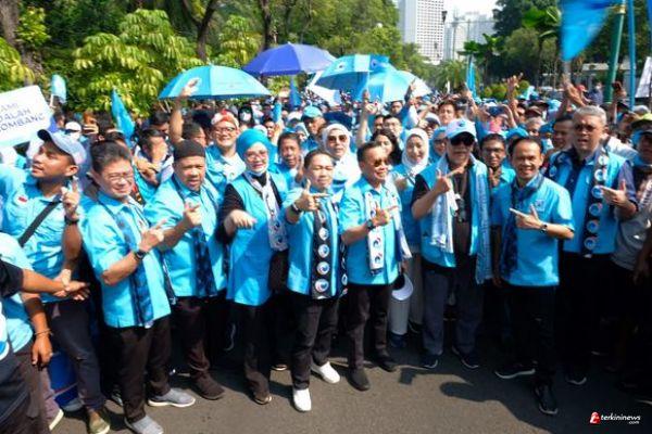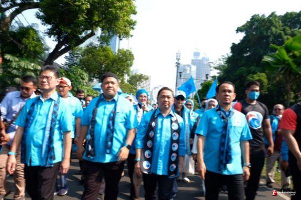 Sebelum prosesi pendaftaran, Anis Matta melakukan long march dari Gedung Graha Mandiri di Jalan Imam Bonjol menuju KPU bersama ribuan kader Partai Gelora.