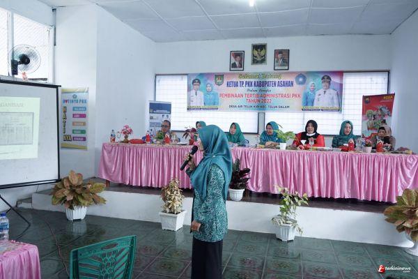 ASAHAN - Ketua Tim Penggerak PKK Kabupaten Asahan Hj. Titiek Sugiharti Surya didampingi Wakil Ketua II Bidang Pendidikan Ny. Hj. Derlina John Hardi melakukan kunjungan pembinaan Tertib Administrasi dan meninjau secara langsung kondisi Desa Air Teluk Kiri Kecamatan Teluk Dalam, yang akan mengikuti lomba tingkat Provinsi Sumatera Utara, Kamis (18/08/2022).
