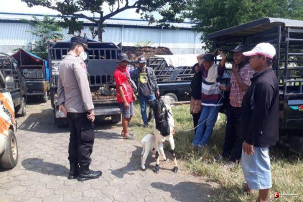 Kapolsek Cepiring AKP Agung Setio Nugroho SH bersama anggota melakukan pengecekan ke pasar hewan Wagean Desa Gondang Cepiring untuk mencegah penyebaran penyakit mulut dan kuku (PMK) pada hewan ternak yang terjadi di beberapa wilayah.