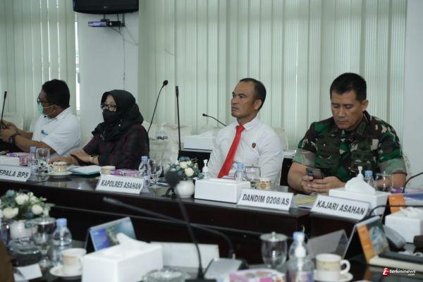 ASAHAN - Bupati Asahan H. Surya, BSc bersama Dandim 0208/AS Letkol Inf. Franki Susanto, SE, Kajari Asahan Dedyng Wibiyanto Atabay, SH, MH, Kapolres Asahan Diwakili Dr. A. Sanusi S, SH, MH, Sekdakab Asahan Drs. John Hardi Nasution, MSi Mengikuti Rapat Koordinasi Nasional (Rakornas) Pengendalian Inflasi tahun 2022, secara virtual di Ruang Mawar Kantor Bupati Asahan, Selasa (30/08/2022).