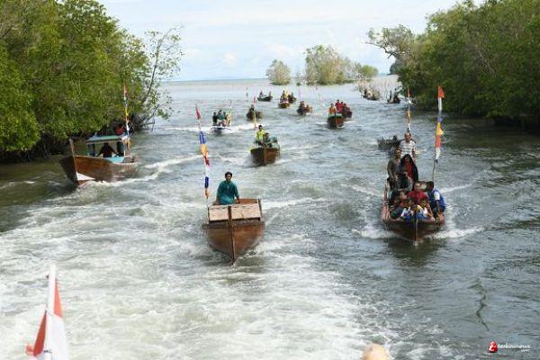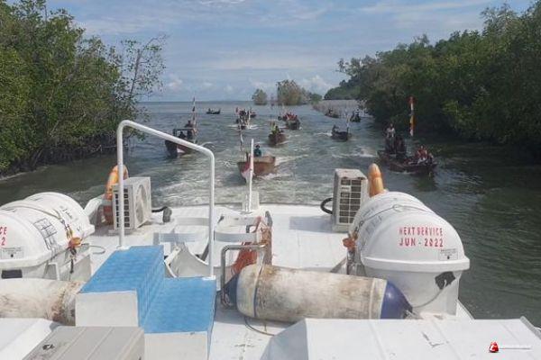 *Puluhan Perahu Pompong Mengiringi Kapal Rombongan Gubernur Kepri