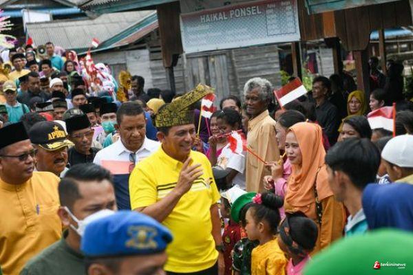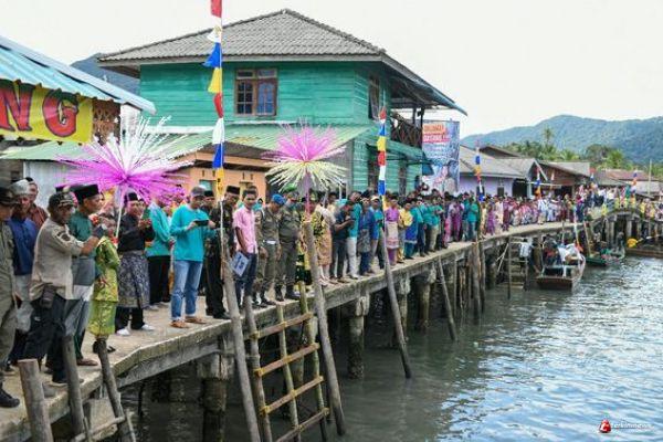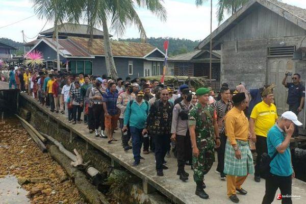 Disepanjang pelantar Desa mentuda, ribuan masyarakat sudah menunggu dengan pakaian beragam, dari anak-anak sampai orang tua. Kepala Desa Mentuda, Darmawan didampingi sejumlah tokoh masyarakat dan adat setempat menyambut Gubernur Ansar dan rombongan. Prosesi penyambutan berlanjut, antusiasme masyarakat tumpah. Bahkan seorang ibu berteriak memanggil Gubernur dan meminta untuk bersalaman. Tabuhan kompang mengiringi perjalanan Gubernur dan rombongan disepanjang pelantar.