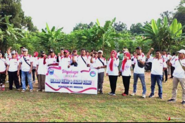 Jalan sehat yang diikuti oleh seluruh masyarakat Desa Plelen dan dilaksanakan pada Minggu (4/9/2022).