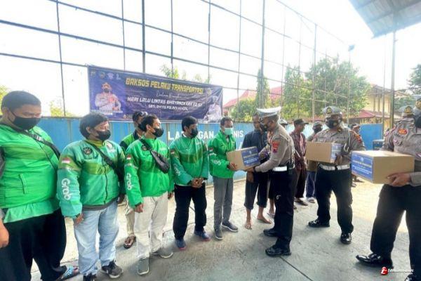 Satuan Polisi Lalu Lintas (Satlantas) Polres Kendal, Polda Jawa Tengah melaksanakan kegiatan Bakti Sosial (Baksos) dalam rangka HUT Lalu lintas Bhayangkara ke 67 tahun 2022 dengan membagikan paket sembako kepada warga masyarakat dan tukang ojek yang ada di wilayah hukum Polres Kendal, Sabtu (10/9/2022).
