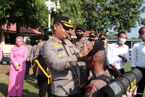 Kapolres Kendal AKBP Jamal Alam H SH SIK MSi memimpin Jalannya Upacara Tradisi Pembaretan dan Penutupan Bintek Bintara Remaja Polres Kendal TA. 2022 sebagai pengukuhan prajurit Bhayangkara angkatan 47, Bertempat di Lapangan Apel Mapolres Kendal, Senin (12/9/2022).