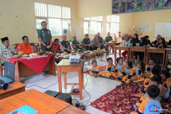 Danrem 071/Wijayakusuma Kolonel Inf Yudha Airlangga, S.E., dengan didampingi Kasrem 071/Wijayakusuma Letkol Inf Candra, S.E., M.I.Pol., dan Kasiterrem 071/Wijayakusuma Mayor Inf Darul Quthni, S.Ag., kunjungi salah satu sekolah Madrasah Tsanawiyah di lembah Gunung Slamet. Rabu (21/9/2022).