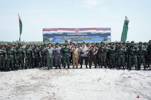 ASAHAN - Bupati Asahan H. Surya, BSc memimpin upacara pembukaan TNI Manunggal Membangun Desa (TMMD) ke-115 TA 2022 di Lapangan Simpang Klep Dusun X Desa Silo Baru Kecamatan Silau Laut, Selasa (11/10/2022).