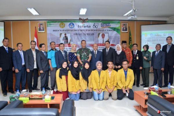 Orasi ilmiah dalam rangka Dies Natalis Fakultas Pertanian Universitas Jenderal Soedirman (Unsoed) Purwokerto yang ke-60 dengan narasumber Danrem 071/Wijayakusuma Kolonel Inf Yudha Airlangga, S.E., dan Prof. Dr. Ir. Tamad, M.Si., Guru Besar Fakultas Pertanian Unsoed.