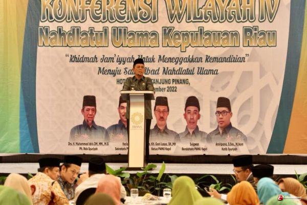 Hal itu disampaikan Gubernur H. Ansar Ahmad saat menghadiri Konferensi Wilayah IV Nahdatul Ulama Kepulauan Riau di Trans Convention Center, Tanjungpinang, Sabtu (26/11). Mengusung tema "Khidmah Jam'iyyah Untuk Menegakkan Kemandirian", konferensi wilayah ini sekaligus diselenggarakan untuk menuju satu abad Nahdatul Ulama.