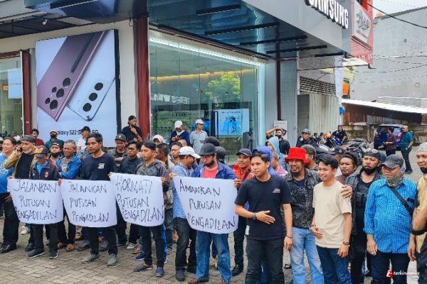 MAKASSAR, -- Hormati, Jalankan dan Amankan putusan pengadilan slogan aksi massa pengunjuk rasa yang digelar Aliansi Masyarakat Pencari Keadilan (AMPK) atas kisruh eksekusi sengketa lahan bangunan Showrom Mazda.