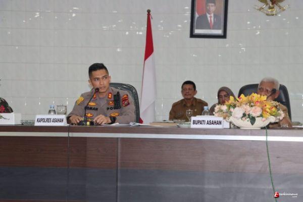 ASAHAN - Kapolres Asahan AKBP Riman Smaradhana Elhaj, SH, SIK, MH menghadiri Rapat Koordinasi penyuksesan tahapan dan jadwal penyelenggaraan Pemilu (Pemilihan Umum) Tahun 2024 di Kabupaten Asahan, Selasa (28/02/2023).