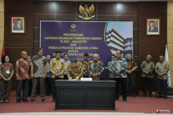 ASAHAN - Pemerintah Kabupaten Asahan menyerahkan Laporan Keuangan Pemerintah Daerah (LKPD) Unaudited Tahun Anggaran 2022 kepada Badan Pemeriksa Keuangan (BPK) Perwakilan Sumatera Utara.