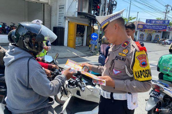 Petugas Pos Pam Polres Tegal Kota Bagikan Brosur Imbauan Tertib Berlalulintas