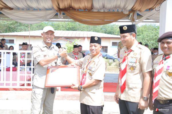 Buwono jua berkesempatan memberikan penyematan tanda peserta Raimuna Cabang Asahan Tahun 2023.(red)