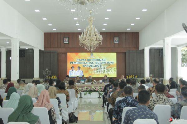 Mengawali sambutannya, Bupati mengatakan, di bulan Juni kita sudah Memasuki Bulan terakhir dalam triwulan kedua. Untuk itu seluruh OPD agar segera melaksanakan kegiatan sesuai dengan waktu yang telah ditetapkan, walaupun dalam pelaksanaannya ada jadwal yang bersamaan namun Harus di antisipasi agar berjalan sesuai dengan aturan.
