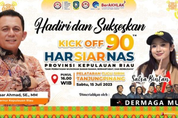 (ADVERTORIAL) - Gubernur Kepulauan Riau H. Ansar Ahmad bersama ketua Komisi Penyiaran Indonesia (KPI) pusat Ubaidillah akan melakukan Kick-off pelaksanaan Hari Penyiaran Nasional (Harsiarnas) ke-90 di Pelataran Tugu Sirih, Depan Gedung Daerah, Tepi Laut, Tanjungpinang, Sabtu (15/7), jam 16.00 WIB sampai dengan selesai.