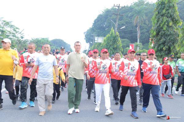 ASAHAN | Bupati Asahan H. Surya, BSc beserta Forkopimda Kabupaten Asahan melepas peserta gerak Jalan santai dalam rangka memeriahkan Hari Ulang Tahun (HUT) ke 78 Republik Indonesia (RI) di Lokasi Car Free Day, Minggu (13/08/2022). Gerak Jalan santai yang menempuh jalur lebih kurang 4 Km dengan rute start di Jalan Lintas Sumatera, Jalan Hos Cokroaminoto, Jalan Wr. Supratman, Jalan Tusam dan Finish di Hutan Kota Taufan Gama Simatupang Kisaran ini diikuti juga Sekretaris Daerah Kabupaten Asahan, Para Asisten, Staf Ahli, OPD, Camat se-Kabupaten Asahan, Ketua TP. PKK Kabupaten Asahan, Ketua Persit KCK Cabang XXXV Dim 0208/AS dan Masyarakat Kabupaten Asahan.