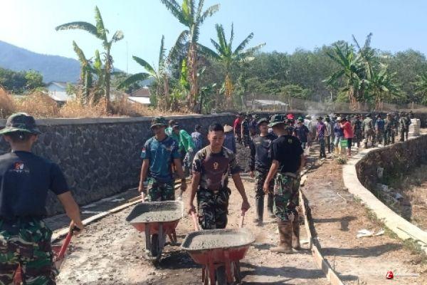 "Mumpung cuaca cerah kami personil satgas bersama warga terus mengebut pengerjaan, soal capek itu manusiawi, tapi semangat tidak boleh kendor, bersama warga kannbanyak yang terlibat, kami bisa gantian saat capek, targetnya sasaran fisik selesai tepat waktu", terangnya.