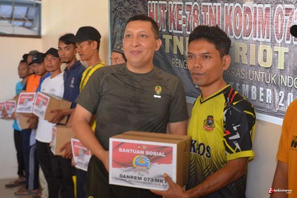 KENDAL. Satgas TMMD Reguler ke-118 Kodim 0715/Kendal menggelar kegiatan bakti sosial pembagian bantuan paket sembako kepada warga masyarakat kurang mampu.