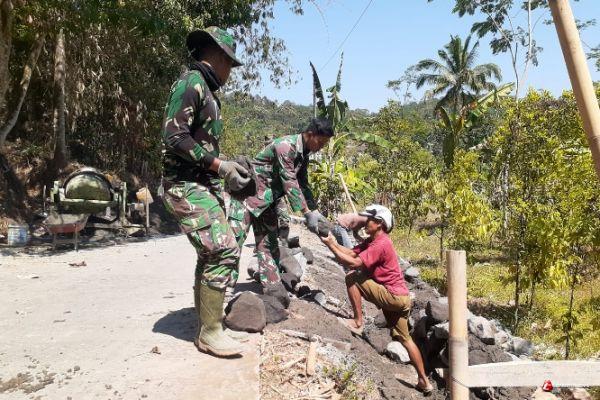Pembangunan Talud Jalan Program TMMD Di Kerjakan TNI Bersama Warga