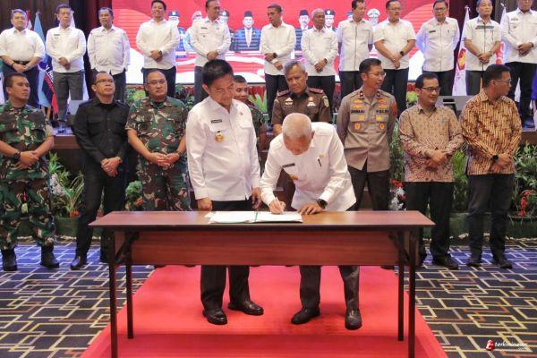 Pemerintah Asahan Ikuti Deklarasi Pemilu Damai dan Penandatanganan Kesepakatan Pendanaan Bersama Pilkada Serentak 2024