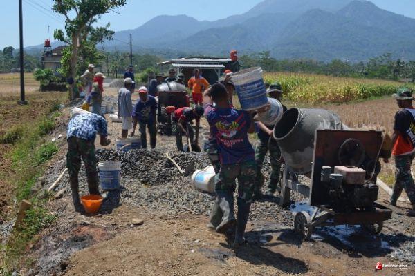 ''Untuk warga, yang terlibat pengerjaan di gikr secara rutin stiap harinya, dari masing masing RT menurunkan 10 tenaga untuk membantu setiap harinya, semua menyadari jika jalan ini sudah jadi , maka kami yang menikmatinya, jadi Pekerjaan jalan TMMD ini juga pekerjaan kami juga, sehingga tidak mutlak pekerjaan Pak Tentara, meski ini kegiatan TMMD,'' imbuh kades.