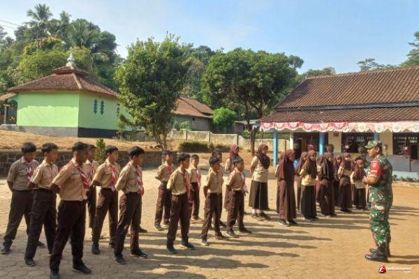 Kendal - Peduli pendidikan serta bantu menumbuhkan semangat cinta tanah air kepada generasi penerus bangsa, Anggota Satgas TNI Manunggal Membangun Desa (TMMD) Reguler ke-118 Kodim 0715/Kendal Tahun 2023 Sertu Suroso beri materi wawasan kebangsaan (wasbang) kepada siswa SDN 01 Purwogondo Kecamatan Boja, Kendal, Jum’at (29/09/23).