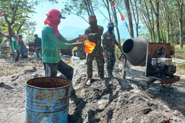 Satgas TMMD Reguler ke-118 Kodim 0715/Kendal bersama warga Desa Purwogondo bekerja secara bergotong-royong dalam pengerjaan sasaran fisik TMMD. "Saat ini pengecoran sudah mencapai 70 persen, dan di targetkan akan rampung sesuai target sebelum penutupan TMMD", ujar dan SSK satgas, Lettu Inf Endri.