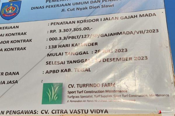 TEGAL - Proyek pembangunan penataan koridor 1 yang berlokasi di jalan Gajah Mada Kabupaten Tegal dengan nomer kontrakan 000.3.3/PBLT/127/SP/Gajahmada/VII/2023 yang di anggaran dari Anggaran Pendapatan Belanja Daerah (APBD) Kabupaten Tegal dengan nilai kontrak Rp 3.307.305.00,- Diduga pekerjaan nya cuman asal jadi dan tidak sesuai spek.